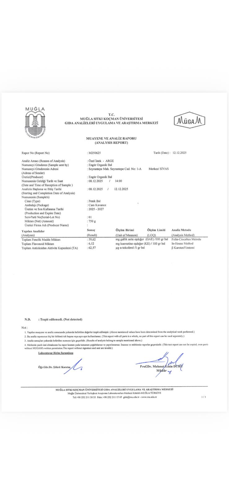 SERTİFİKA VE ANALİZLER - Engür Organik Bal, Organik Sertifikalı Süzme Çiçek Balı, Karakovan Balı, Propolis, Polen, Arı Ürünleri